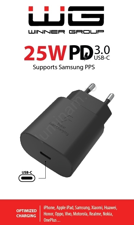 Adaptor de încărcare rapidă Winner Group 1xUSB-C Power Delivery 25W negru