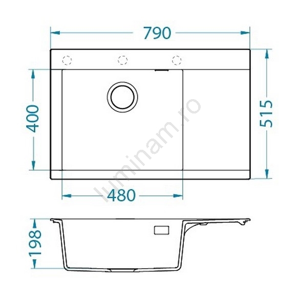• Conținutul pachetului: chiuvetă din granit, cleme de montaj, ventil cu sită 3 1/2, sifon cu racord pentru mașina de spălat vase.