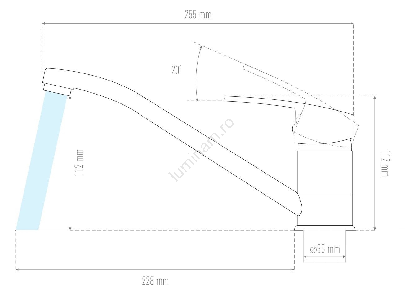 • Baterie de bucătărie monocomandă, pentru instalații cu presiune ridicată, cu braț pivotant.