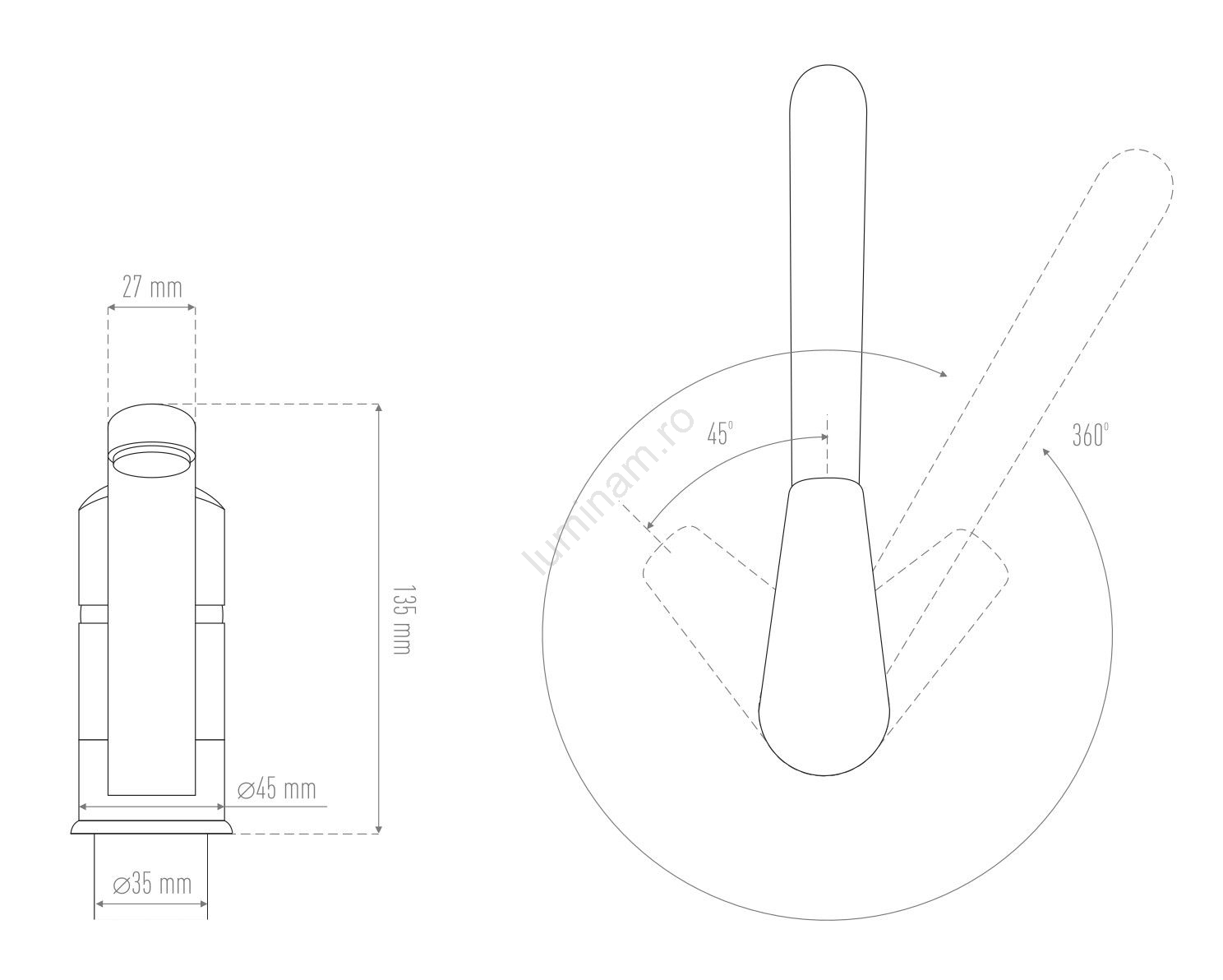 • Montaj într-un orificiu standard de 35 mm.