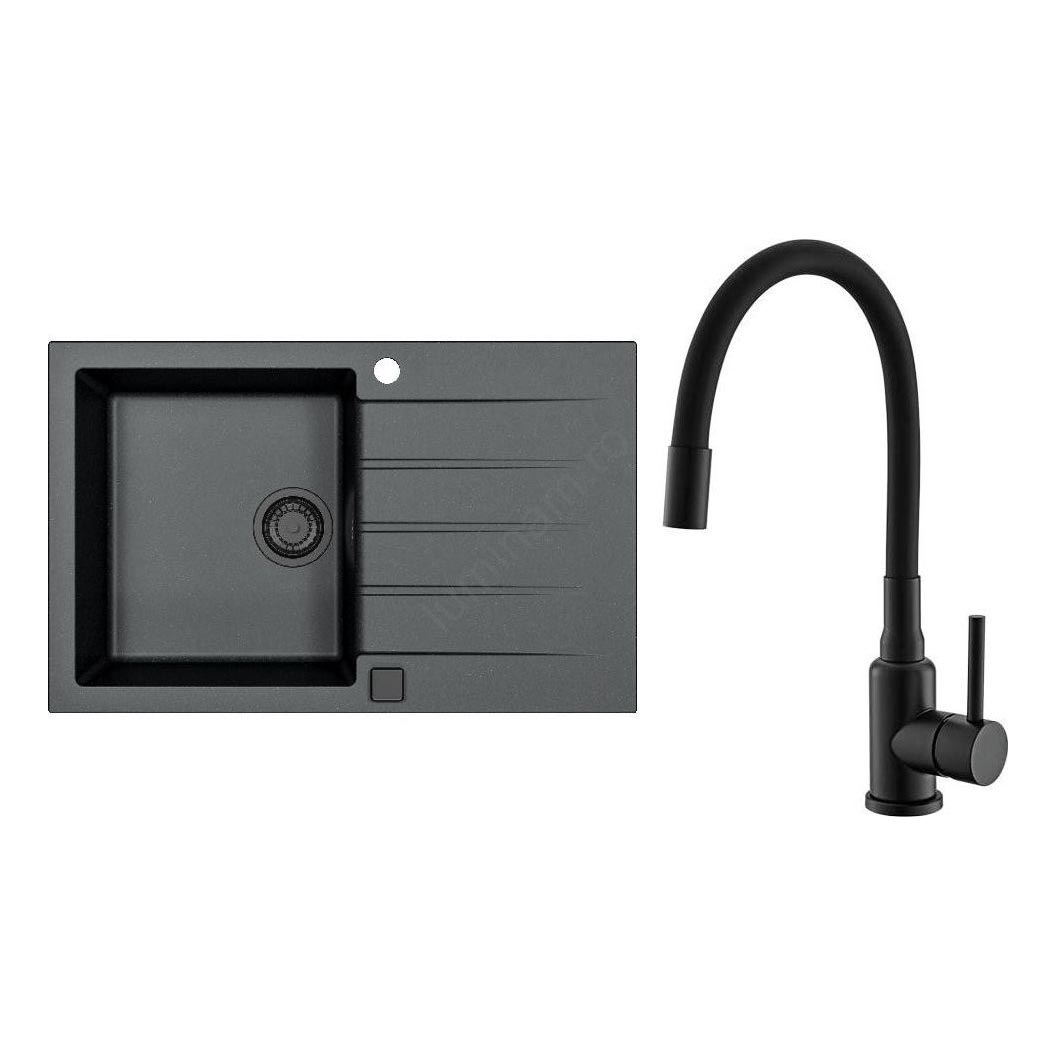 • ALVEUS SETA23201 - Chiuvetă de bucătărie ROCK 78x48 cm + baterie pentru chiuvetă MINTAS 34 cm cu braț flexibil, granit/negru mat