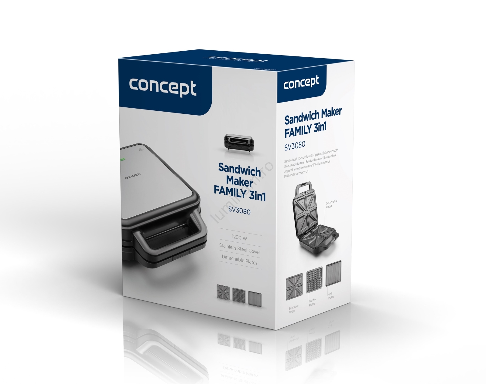 Concept SV3080 - Prăjitor de pâine FAMILY 3în1 1200W/230V negru/inox