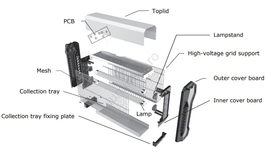 • Tavă detașabilă și lavabilă pentru colectarea insectelor moarte.