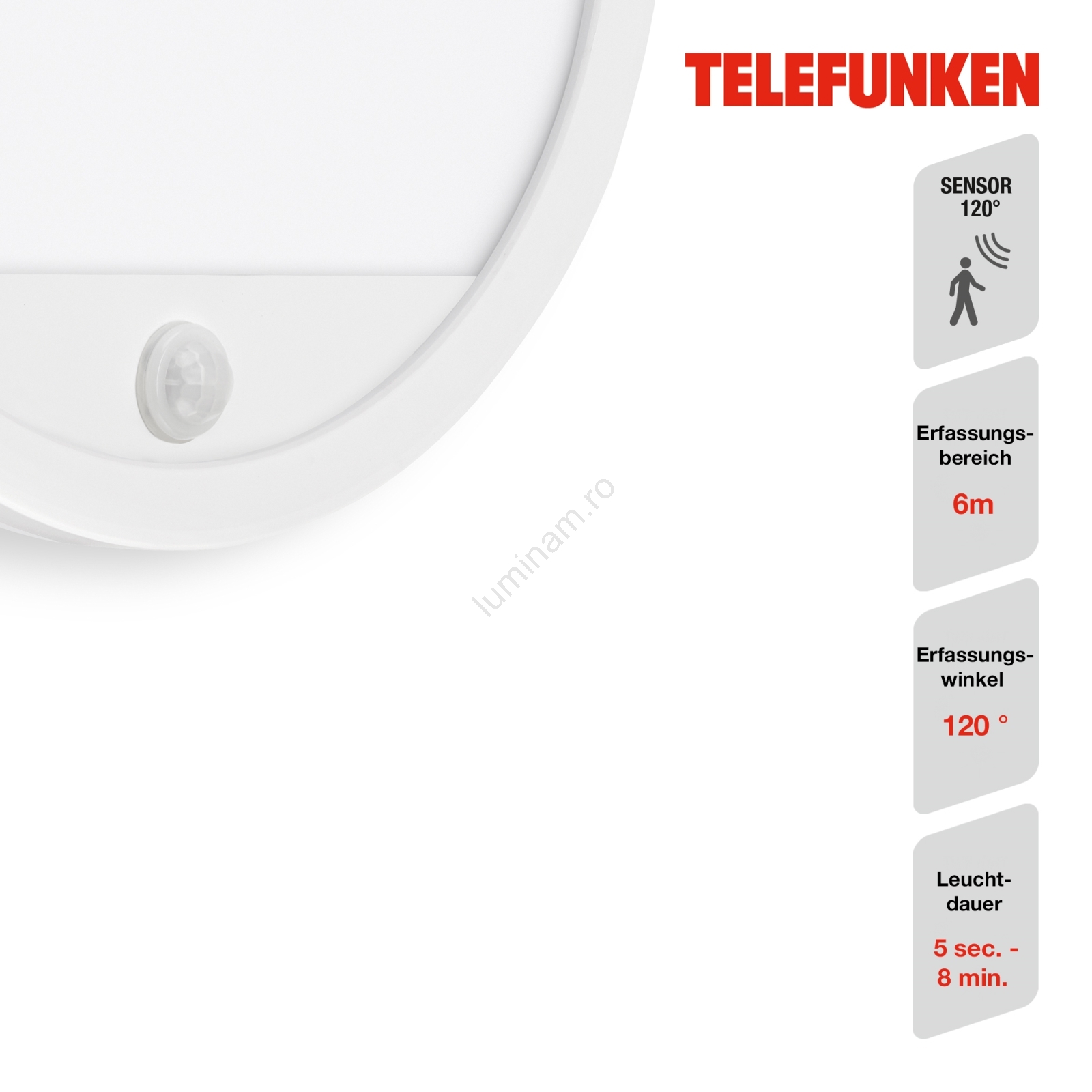 • Aplică LED de exterior cu senzor Telefunken 313706TF LED/15W/230V IP44 alb