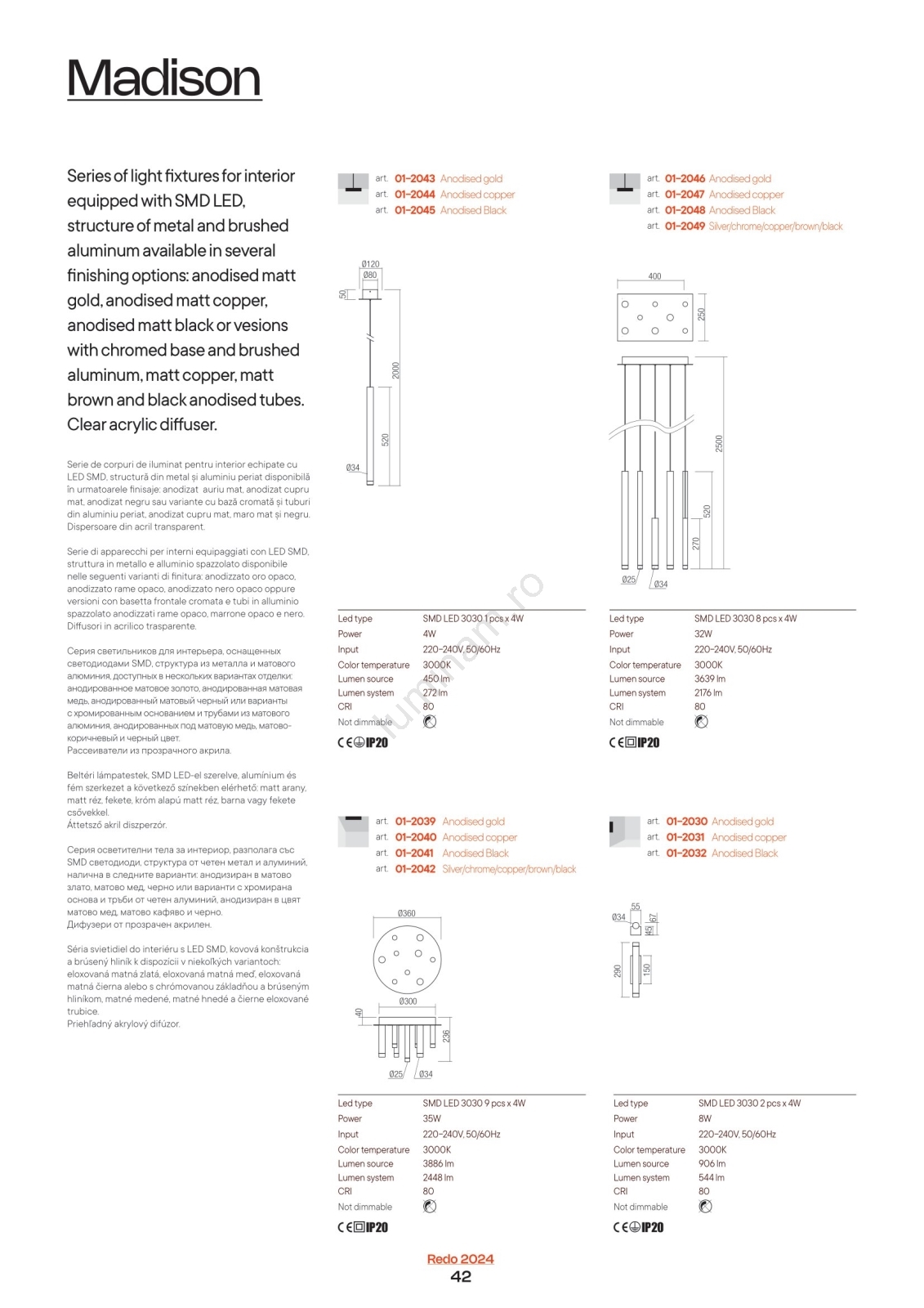 • Aplică LED Redo 01-2037 MADISON 6xLED/4W/230V cupru