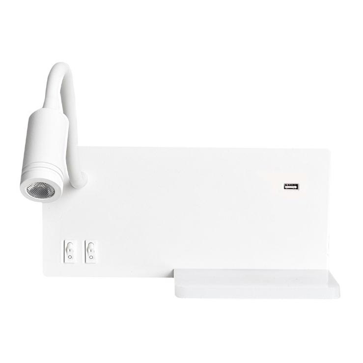 Aplica de perete SHELF, LED/4W+LED/5W+LED/2W/230V, cu port USB, alb