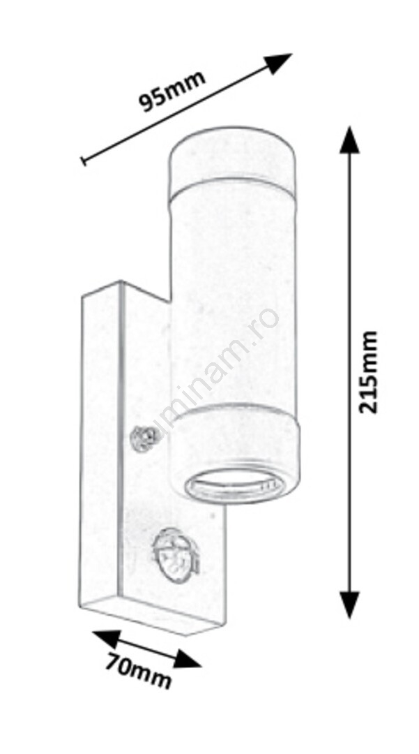 Designul corpului de iluminat exterior Medina cu senzor de mișcare a fost creat într-un stil minimalist. Lampa mată neagră, realizată din plastic, este completată de un abajur transparent; lampa emite lumină atât în sus, cât și în jos. Este ideală pentru montarea pe peretele exterior al casei sau pe terasă, unde este necesară o iluminare direcționată a unui spațiu mai mic. Poate fi utilizată doar cu două surse de lumină economice de până la 10 W, cu soclu GU10. Dimensiunile corpului de iluminat Medina sunt: înălțime 215 mm, lățime 70 mm, distanța față de perete 95 mm. Senzorul de mișcare detectează mișcarea la o distanță de 8 metri, cu un unghi de 90°. Senzorul nu funcționează în timpul zilei pentru a economisi energie. Gradul de protecție IP44 al corpului de iluminat asigură că nu pot pătrunde obiecte cu diametrul maxim de 1 mm și este protejat împotriva stropirii cu apă din orice direcție. Corpul de iluminat se livrează fără sursă de lumină.