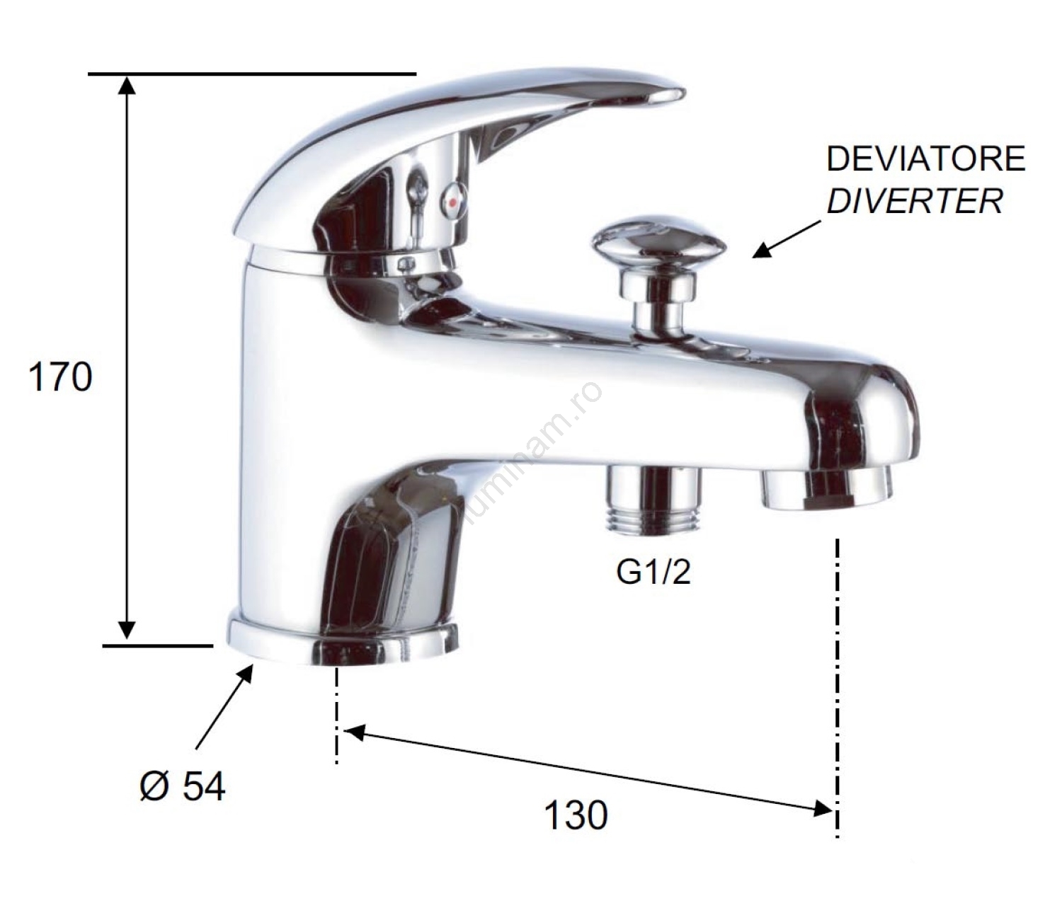 • Este echipată cu diverter pentru duș și manetă monocomandă.