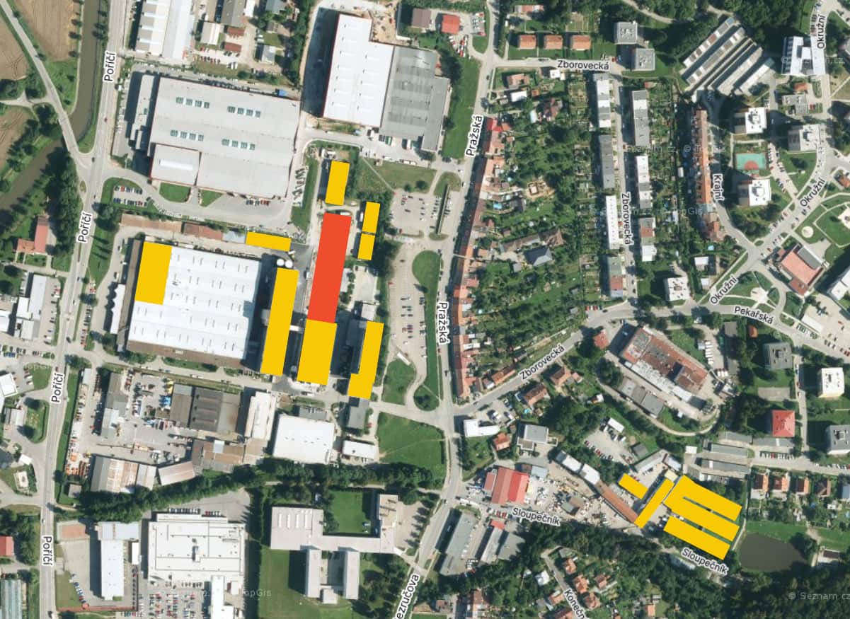 Spațiile nou construite (marcate cu roșu pe hartă) vor completa câteva dintre halele de depozitare originale ale fostului sit industrial, care găzduiește și departamentul de logistică și centrul pentru clienți. Centrul administrativ al companiei este situat împreună cu alte trei hale de depozitare în apropiere.