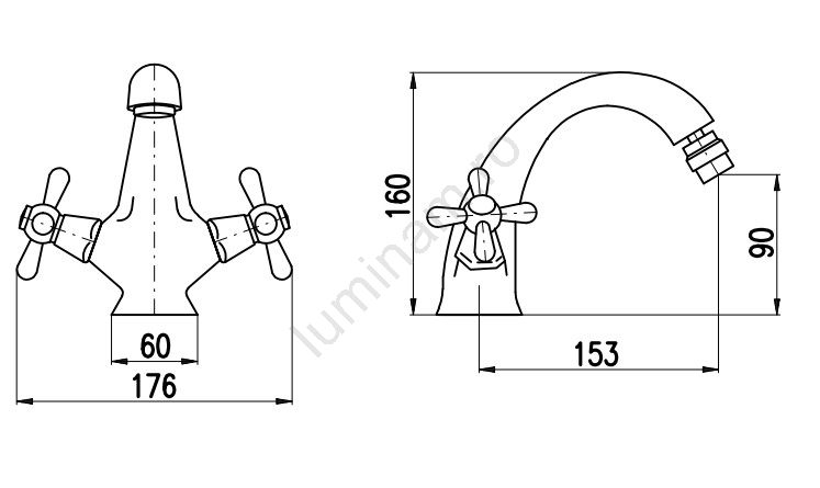• Baterie pentru bideu, montaj pe bideu, cu ventil click-clack 5/4".