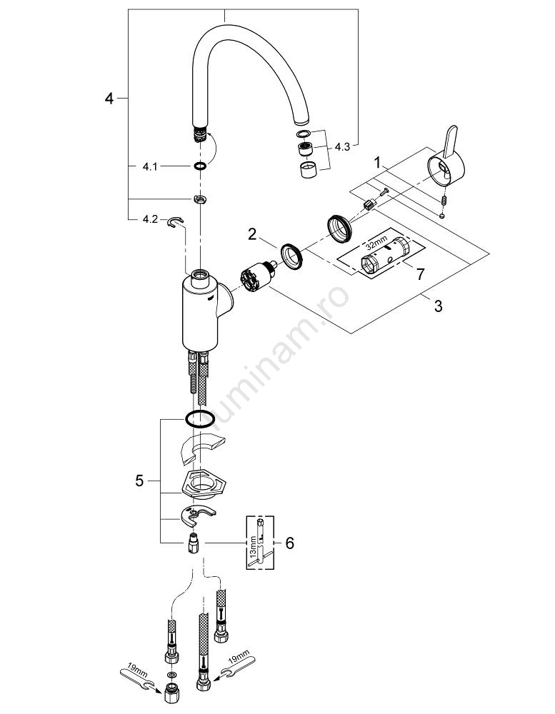 • Furtune flexibile de racordare pentru o conectare ușoară la sistemul de alimentare cu apă.