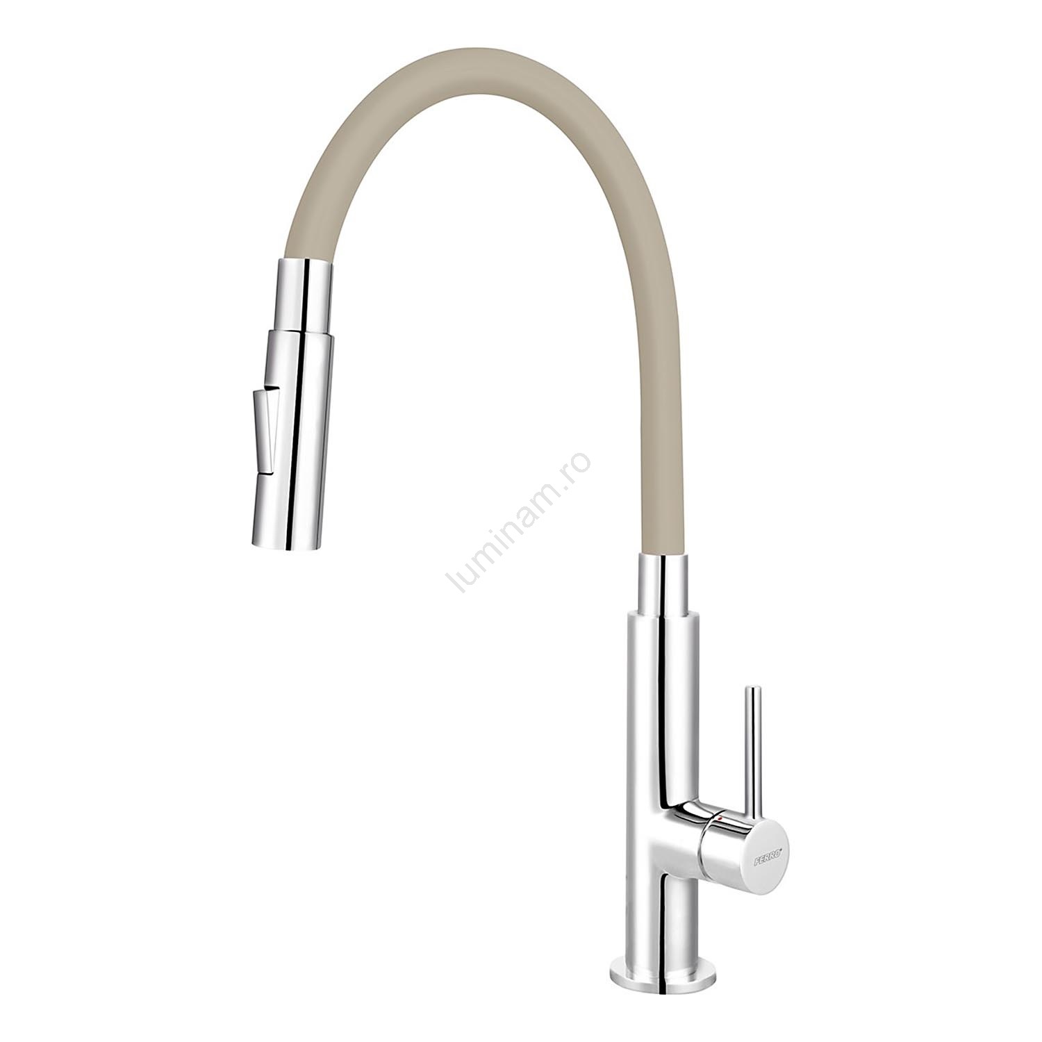 Baterie de chiuvetă cu pipă flexibilă FERRO crom lucios/bej