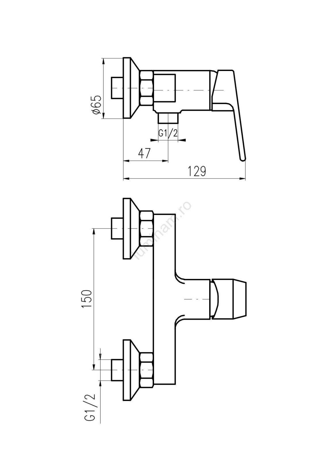 • Baterie de duș cu montaj pe perete.