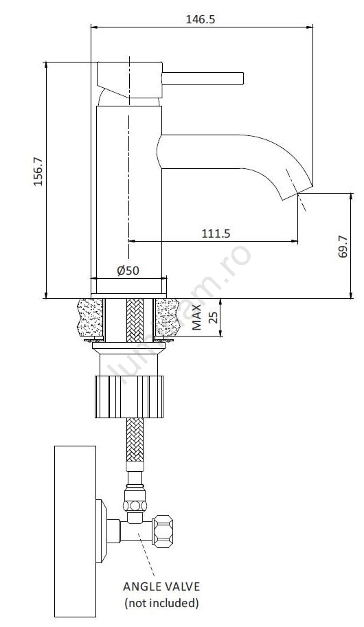 • Această baterie monocomandată asigură controlul ușor al temperaturii și al debitului de apă.