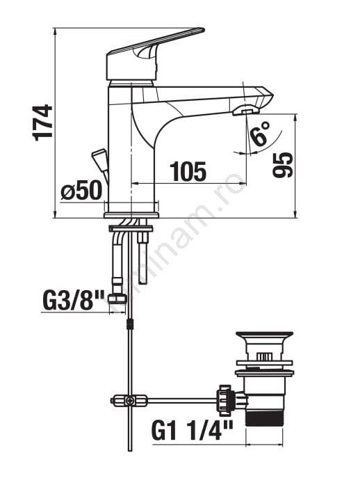 Baterie de lavoar + ventil fără preaplin JIKA H3112E10041111 TALAS 17,4 cm crom lucios