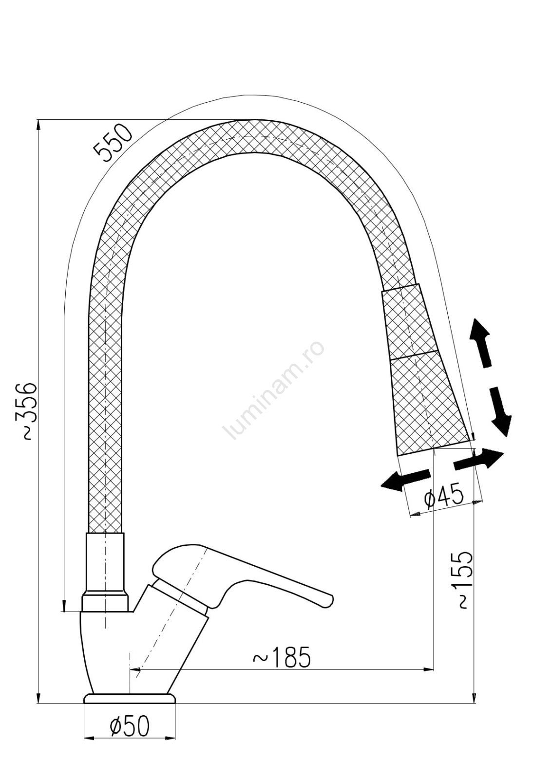 • Pipa înaltă, practică, facilitează spălarea vaselor și curățarea întregii chiuvete sau a lavoarului.
