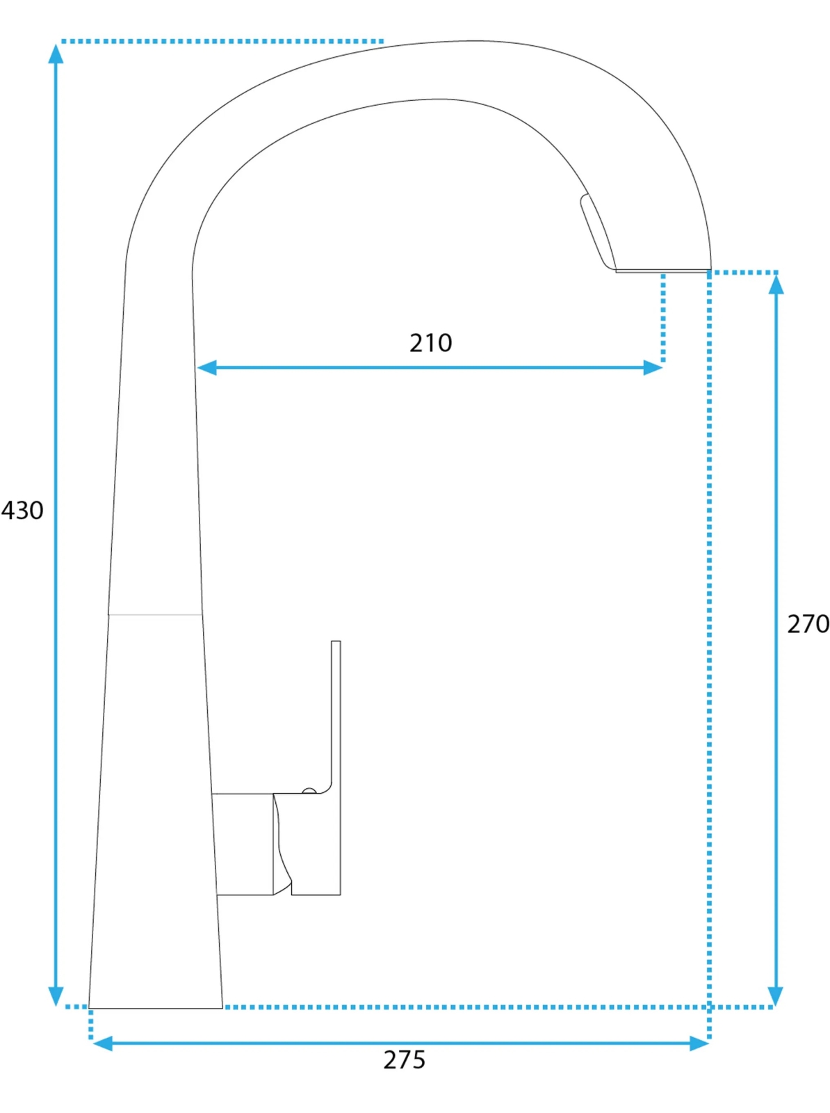 • Baterie monocomandă pentru bucătărie, pentru apă la presiune înaltă, cu pipă pivotantă.