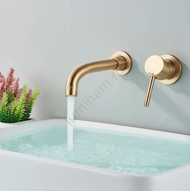 Baterie pentru lavoar LUNGO, montaj încastrat, auriu periat - REA-B4109