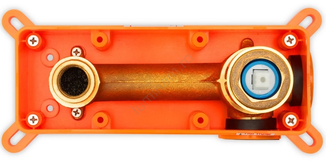 • Montaj în perete cu sistem BOX – modul din plastic cu componente interioare din alamă.