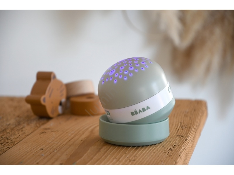 • Proiectorul Beaba Pixie transformă camera copilului într-un spațiu relaxant, proiectând un cer înstelat pe pereți și tavan.