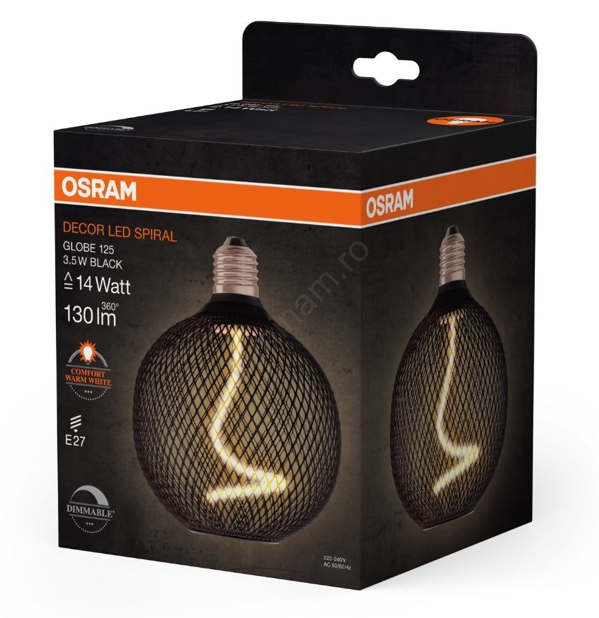 Bec LED dimabil Osram DECOR FILAMENT G125 E27/3,5W/230V 1800K negru