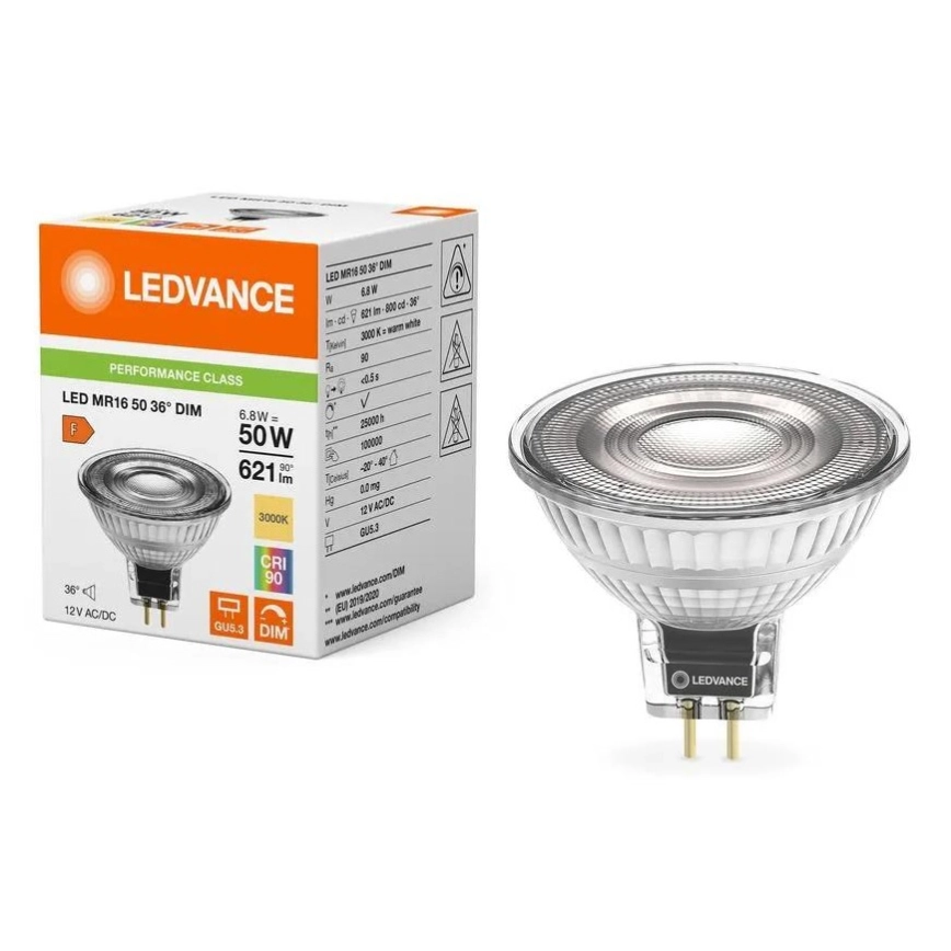 Bec LED reglabil MR16 GU5.3, 6,8 W, 12 V, 3000 K, 36°, CRI 90 - Ledvance Structura de înaltă calitate a produsului va asigura iluminarea perfectă a spațiului interior. Categoria GU5,3 este dedicată becurilor cu același soclu. În magazinul nostru virtual se poate alege dintre becuri cu filament tradițional sau becuri LED moderne, care au o durată de viață mai lungă și sunt mai eficiente din punct de vedere energetic.