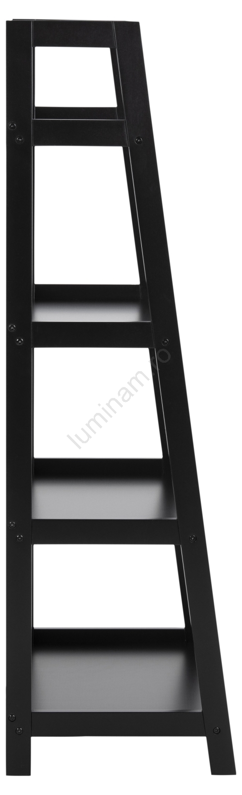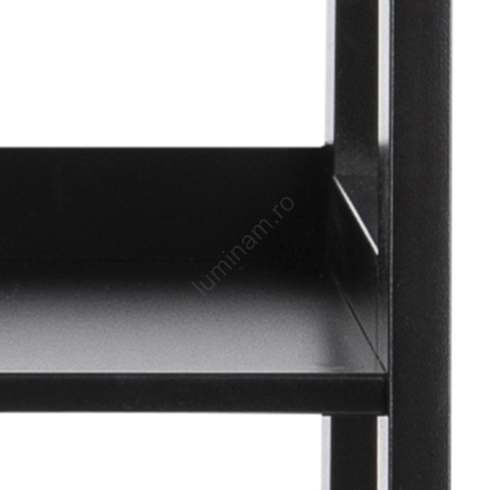 • Cadru și bază realizate din MDF lăcuit NC negru, 4 rafturi realizate din MDF lăcuit negru întărit cu UV.