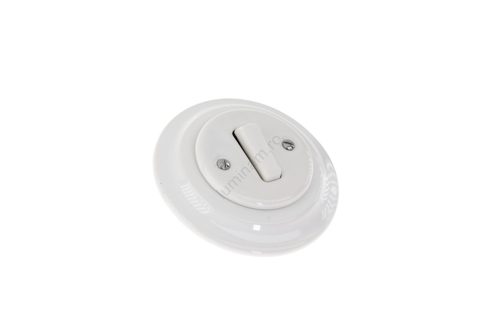 Bohemia-Design - Întrerupător retro simplu din porțelan cu ramă nr. 6, alb
