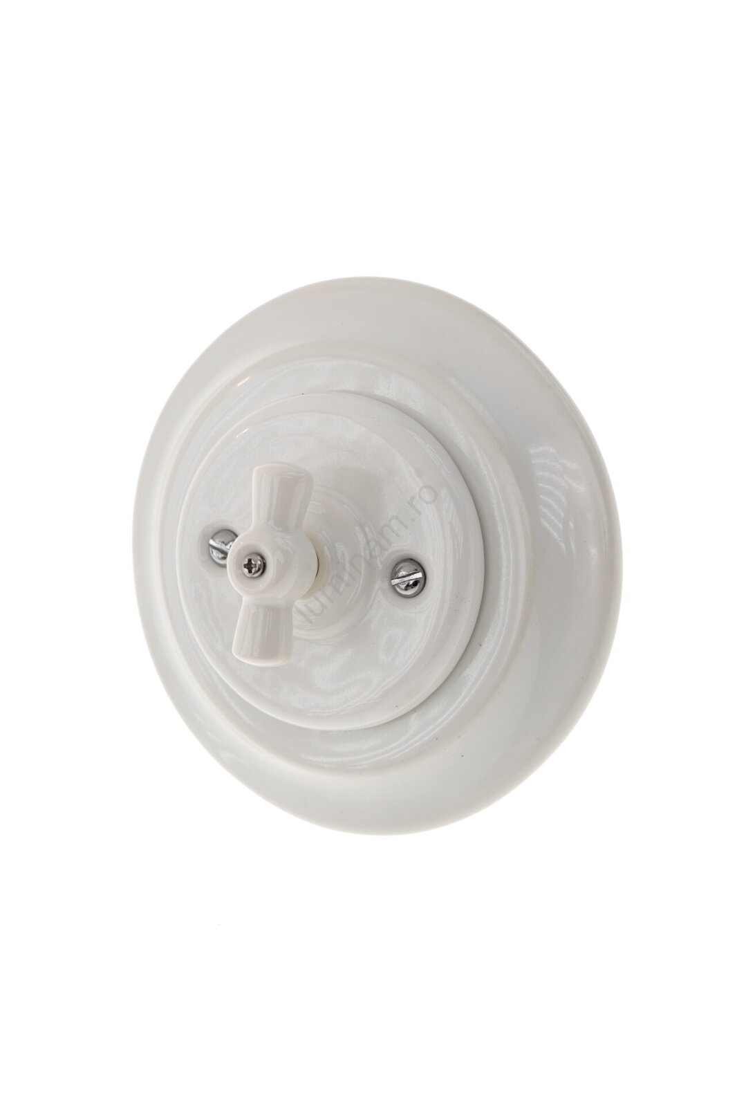 Bohemia-Design - Întrerupător retro rotativ din porțelan cu ramă nr. 7, alb