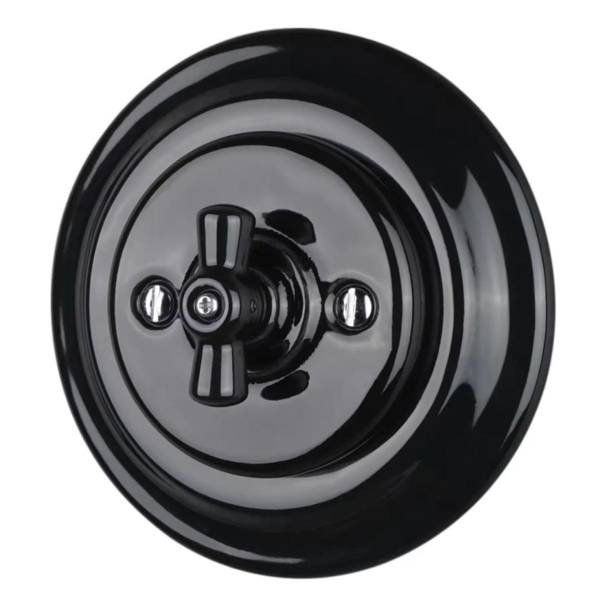 Bohemia-Design - Întrerupător retro rotativ din porțelan cu ramă nr. 7, negru