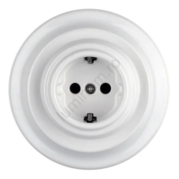 Bohemia-Design - Priză de perete retro din porțelan cu ramă SCHUKO 250V/16A, albă