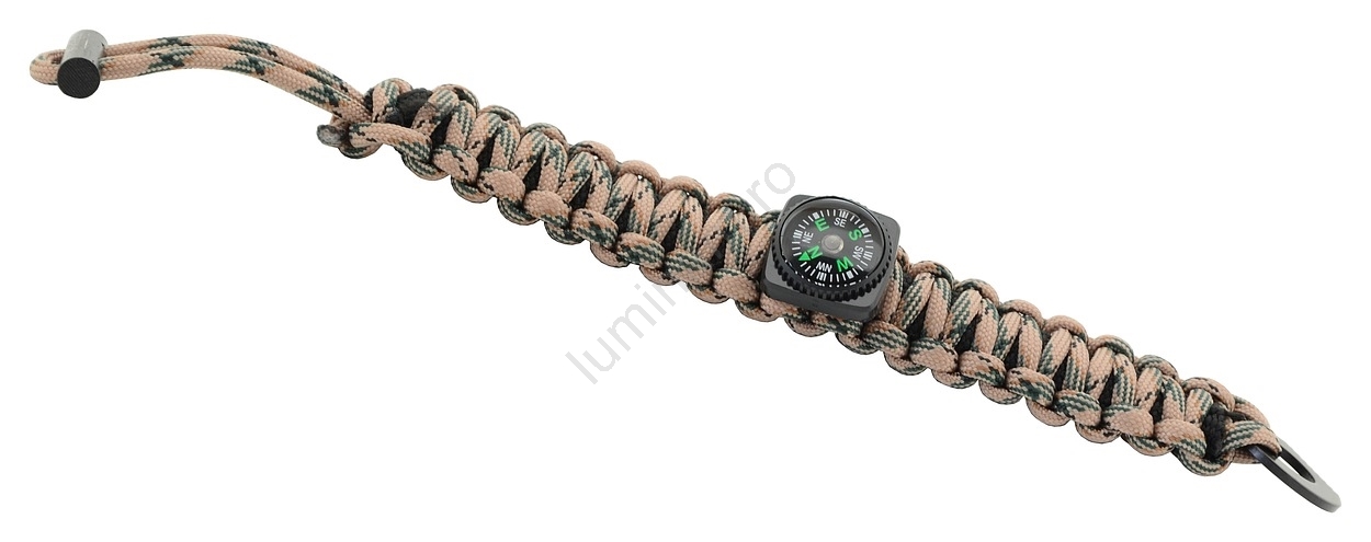 • Brățară pentru exterior cu busolă și cremene și amnar.