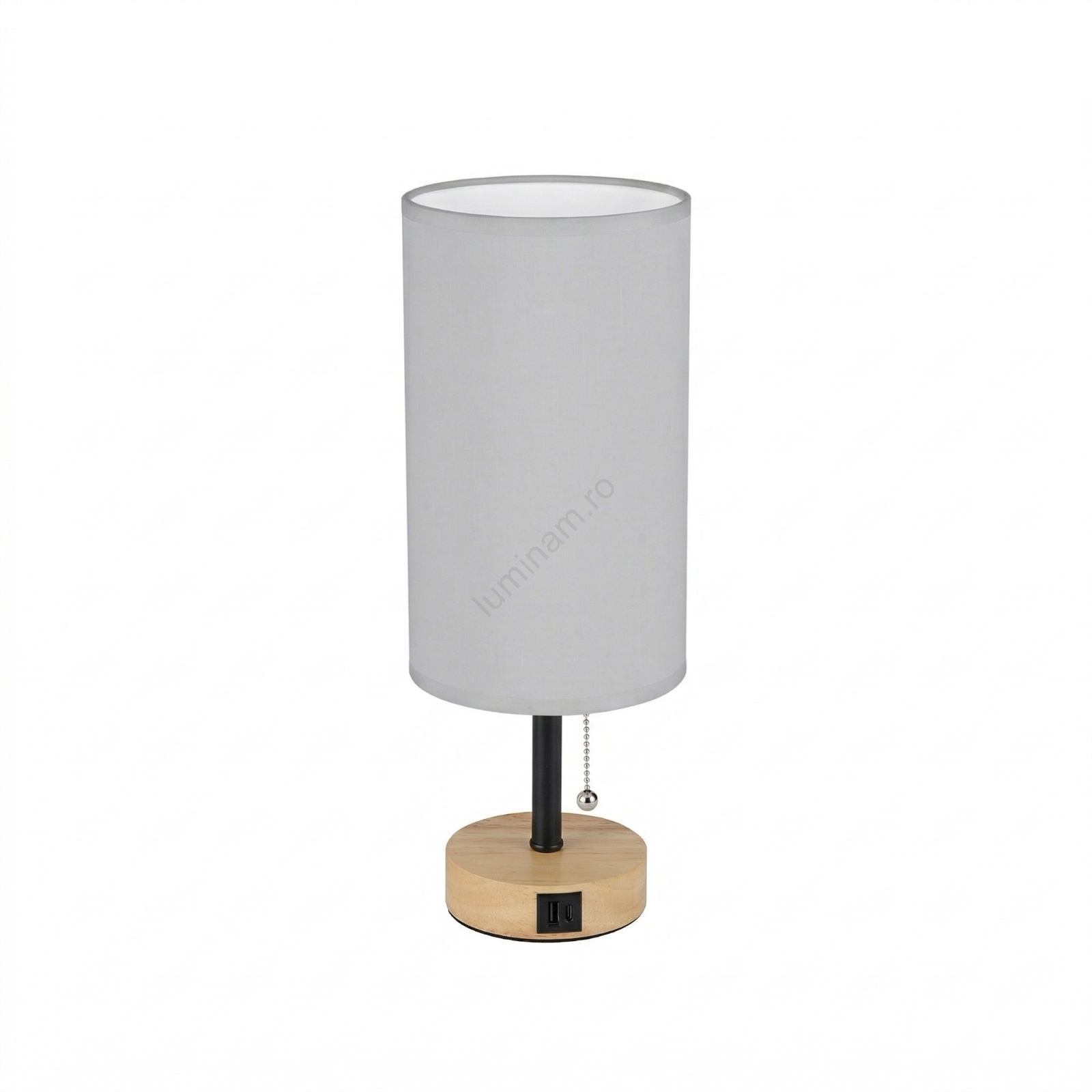 • Brilagi - Lampă de masă cu port USB TABLON 1xE27/25W/230V stejar/alb/gri