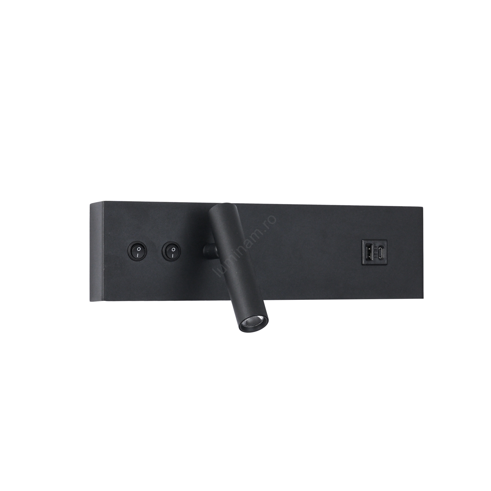 • Brilagi - Spot LED de perete NOCTIS cu port USB, LED/3W/230V + LED/9W, negru