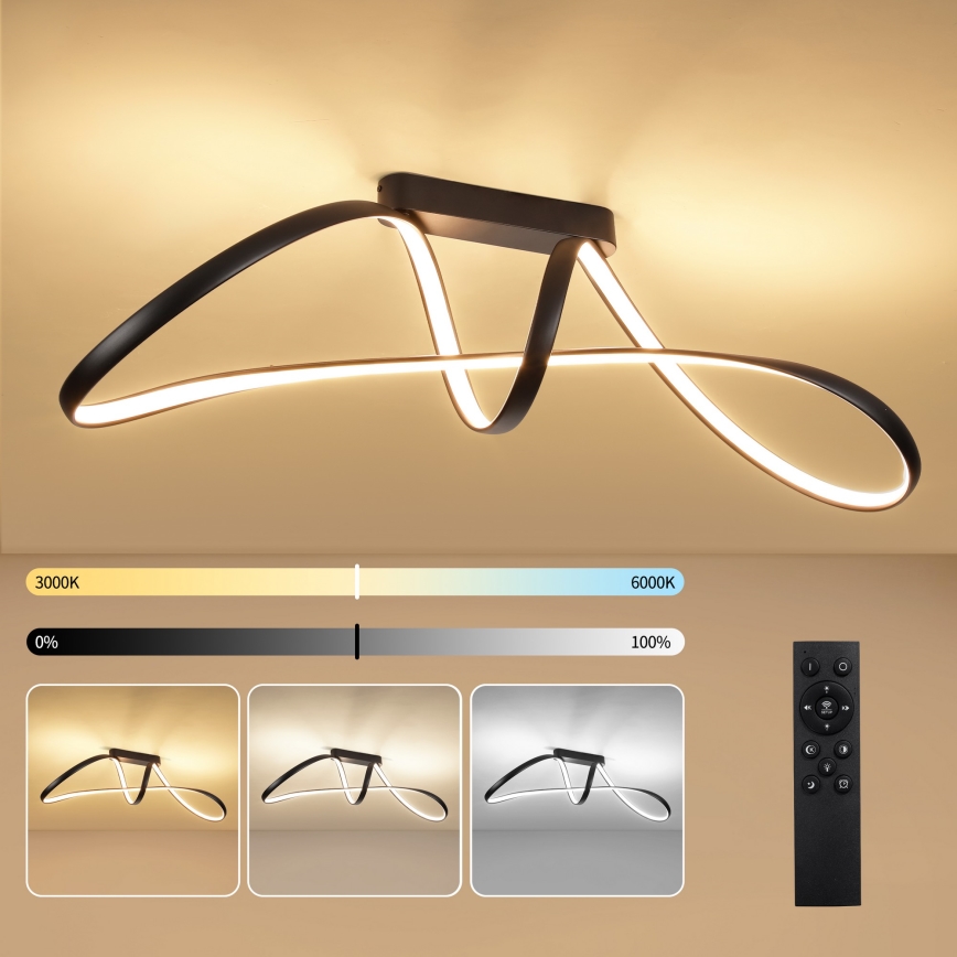 Brilagi - Plafonieră LED dimabilă aplicată TWISTER LED/60W/230V 3000-6000K neagră + telecomandă