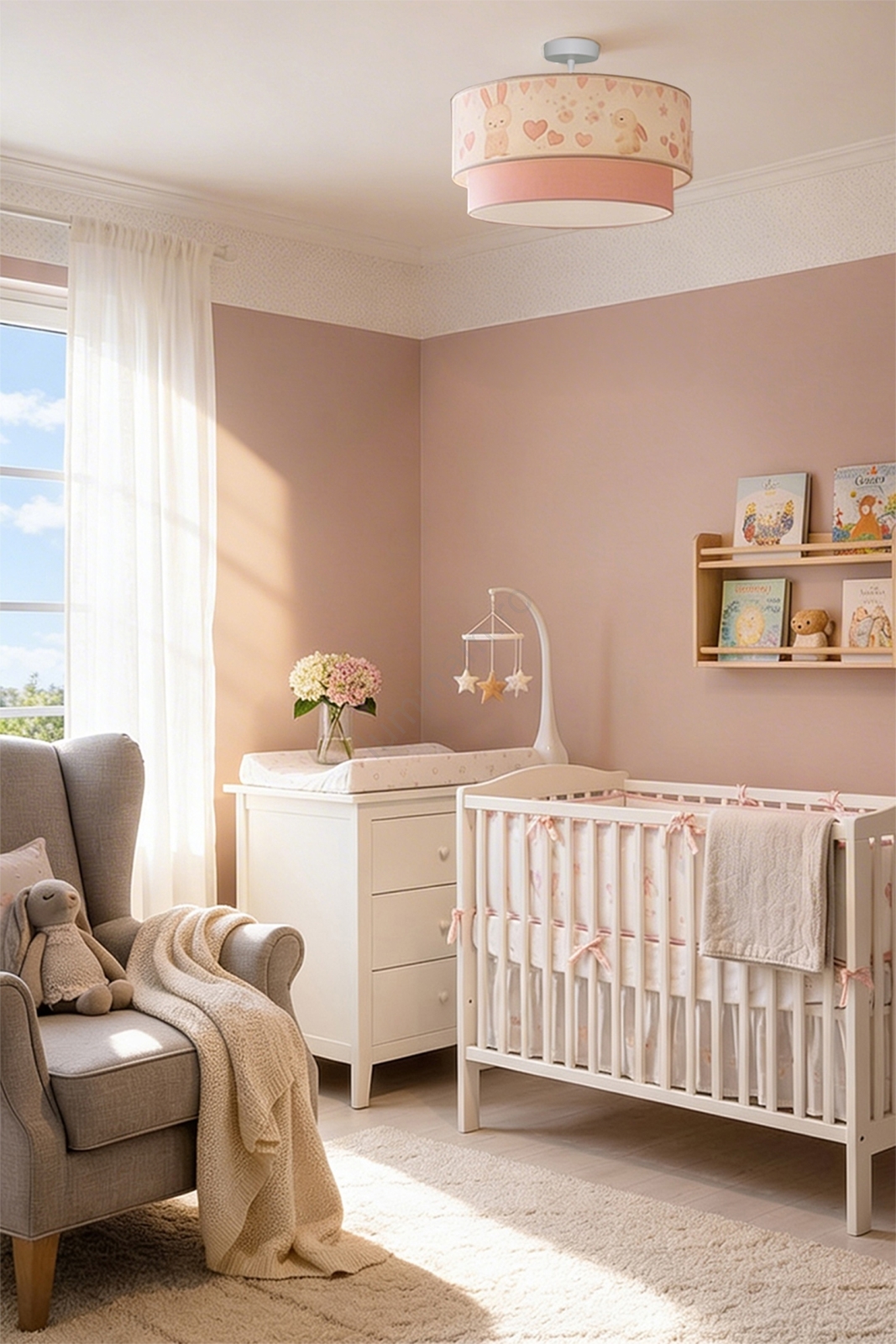 Brilagi - Plafonieră LED aplicată pentru copii BOBO, 1xE27/10W/230V, Ø 40 cm, crem/roz/cu iepurași