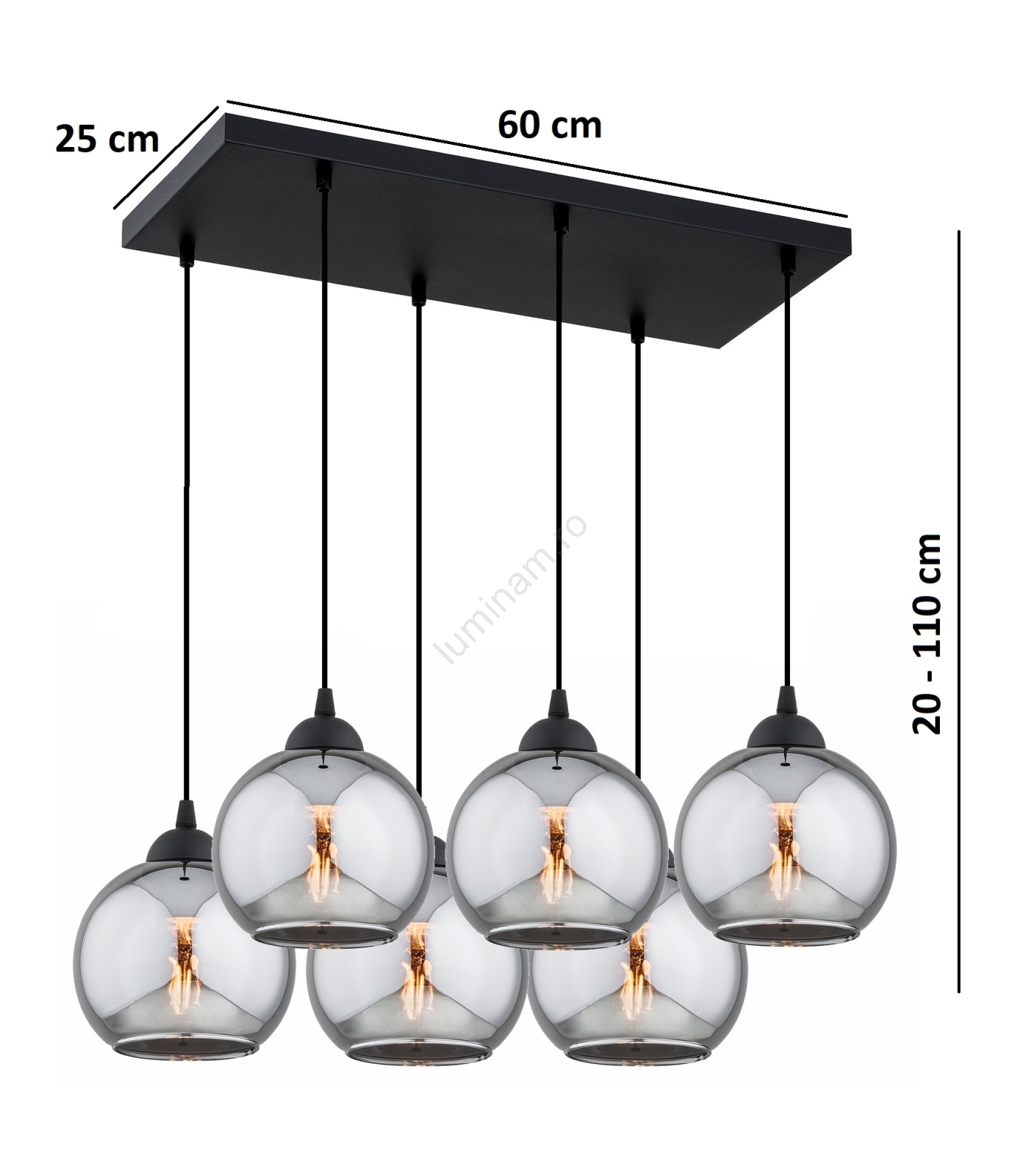 Brilagi - Lustră pe cablu 6xE27/60W/230V negru/gri fumuriu