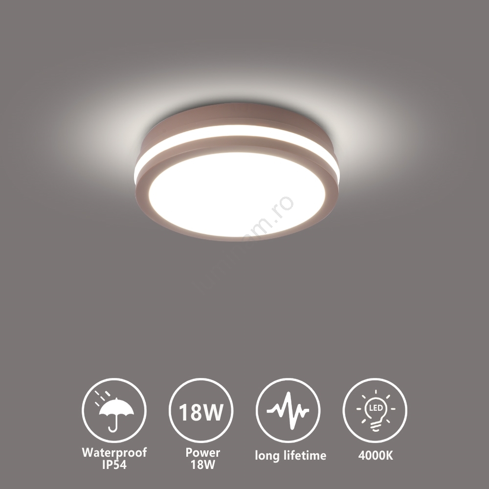 • Brilagi - Plafonieră LED de exterior BENE, 18 W, 230 V, Ø 21,5 cm, maro, IP54