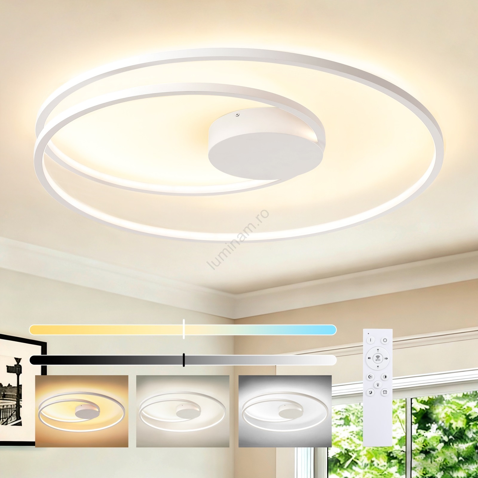 • Brilagi - Plafonieră LED dimabilă TWISTER, 105W, 230V, 3000-6000K, Ø 100 cm, albă, cu telecomandă