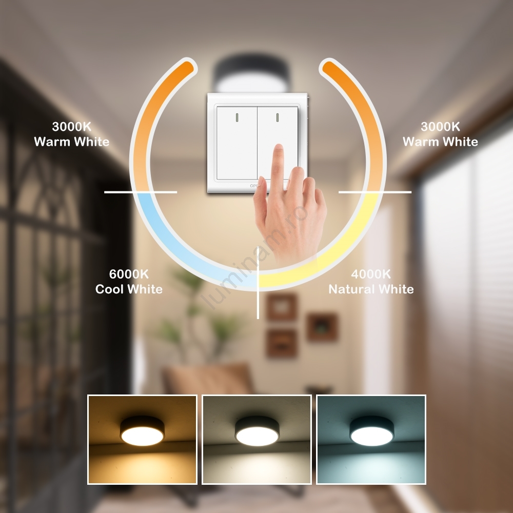• 3000K – Lumină albă caldă (atmosferă plăcută, relaxare).