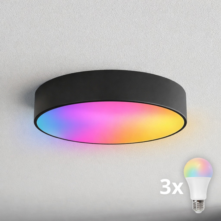 Brilagi - Plafonieră LED RGBW dimabilă pentru baie CLARE, 3xE27/9W, 230V, 2700-6500K, Ø 40 cm, IP54, Wi-Fi, negru