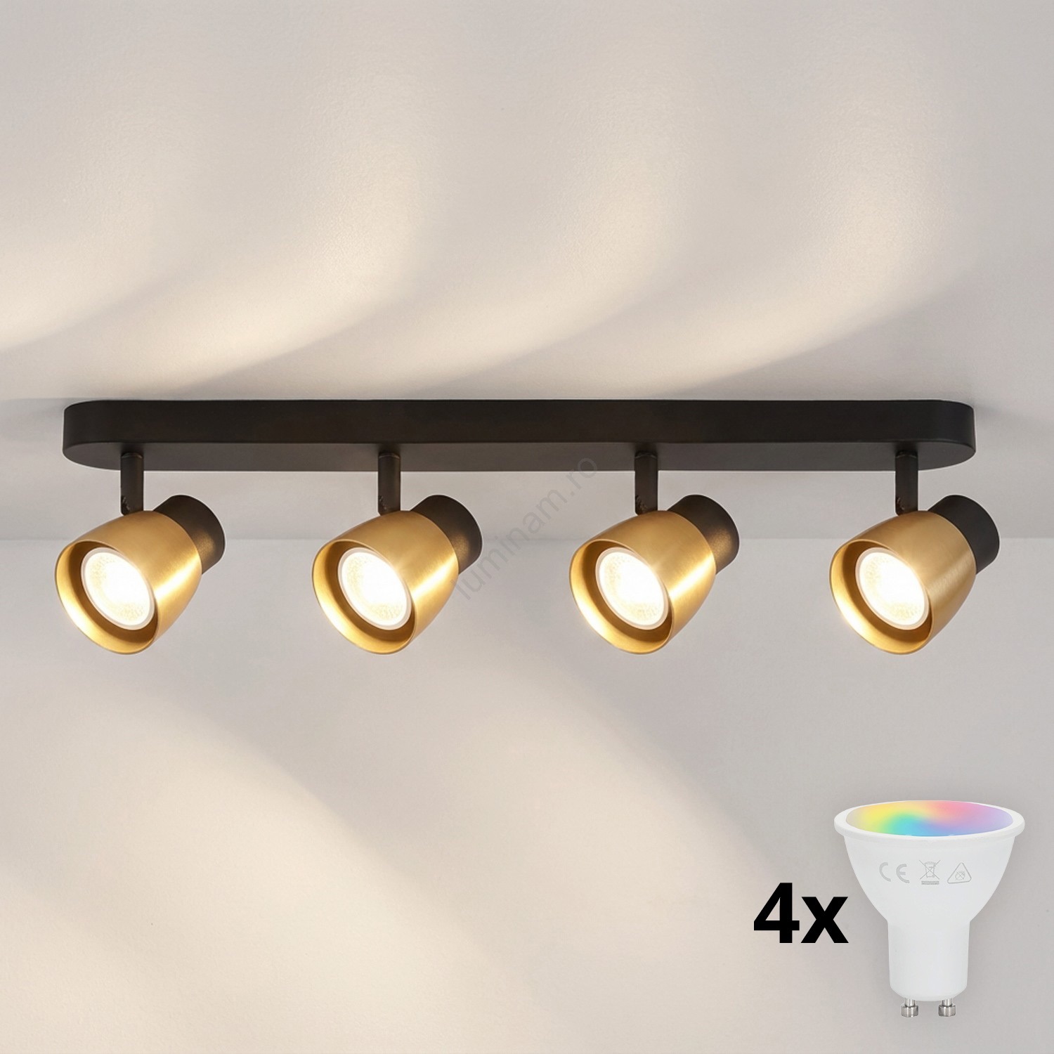 Brilagi - Spot LED RGBW dimmabil NUGGET 4x GU10/6W/230V 3000K negru/auriu + telecomandă