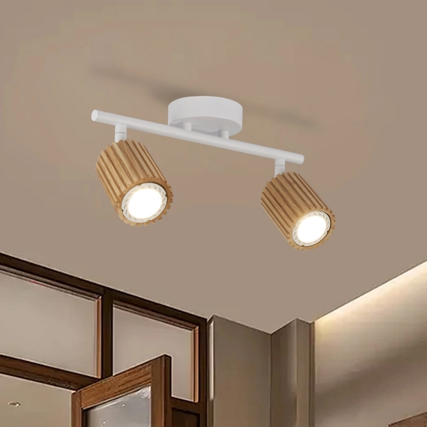 Brilagi - Spot MODERN WOOD 2xGU10/8W/230V lemn de cauciuc/alb