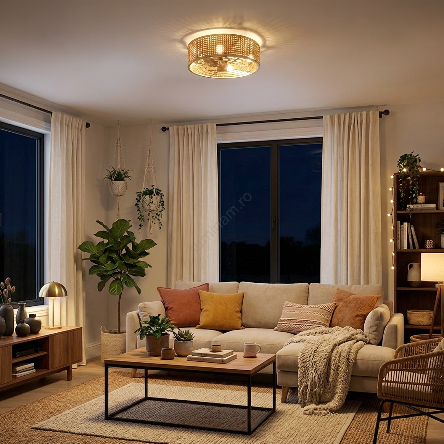 Articolul Brilagi - Ventilator de tavan Ø 50 cm, 4xE27/40W/230V, bambus, cu telecomandă este caracterizat printr-un aspect plăcut și funcțional.  Produsul funcționează cu becuri cu soclu E27. De aici se pot cumpăra alte becuri la prețuri avantajoase.