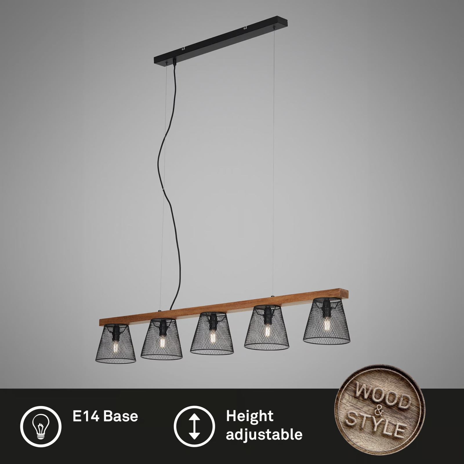 Briloner 4077-055 - Candelabru suspendat WOOD & STYLE pe cablu, 5xE14/25W/230V, lemn de cauciuc