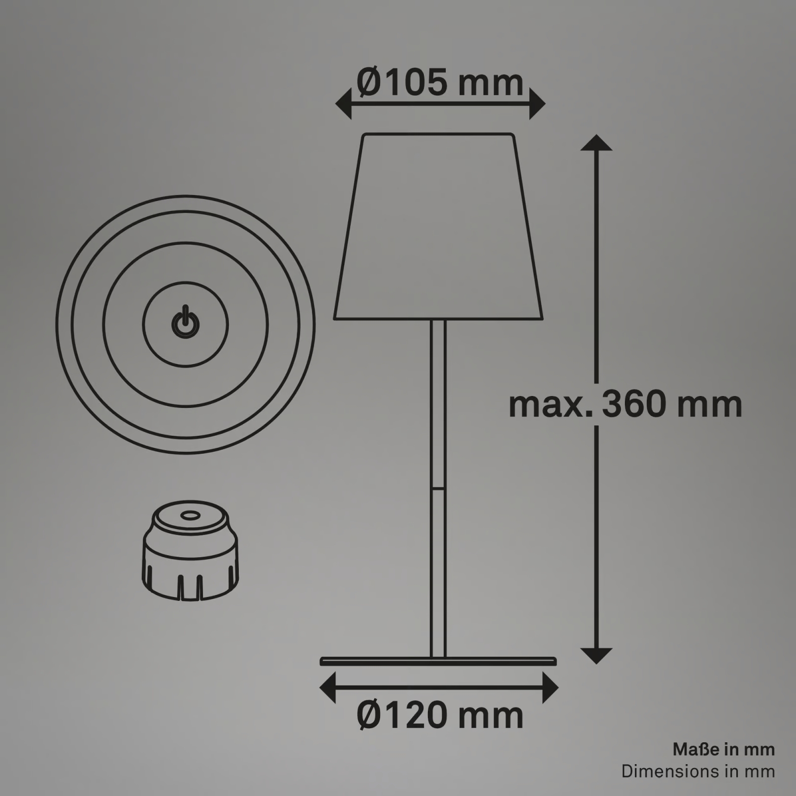 • Briloner 7510013 - Lampă de masă reîncărcabilă pentru exterior CALIDA, LED RGBW reglabilă, LED/2,5W/5V IP44 1200 mAh, bronz