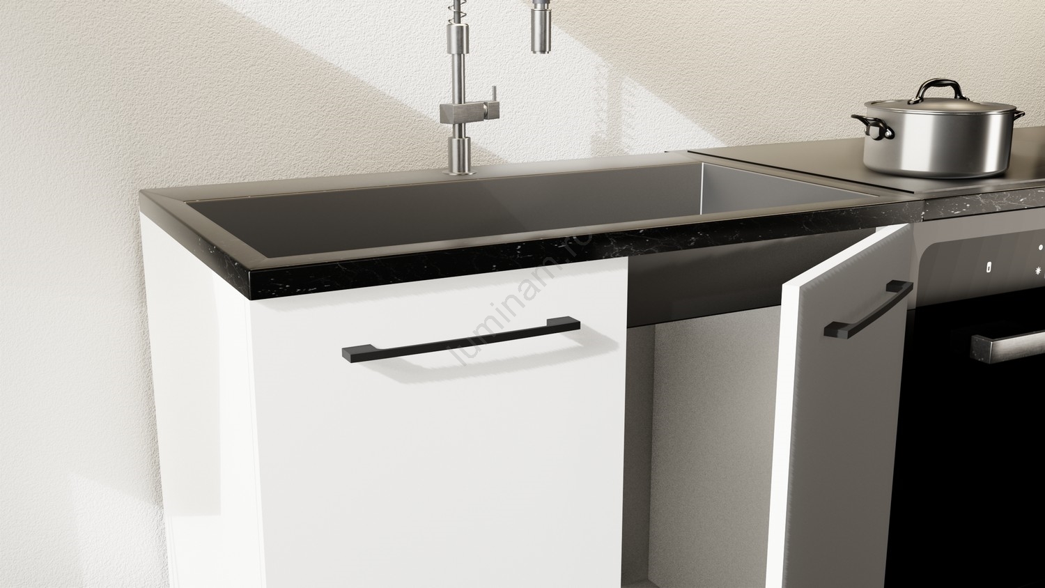 • Aranjarea dulapurilor este modulară, puteți personaliza bucătăria după propriile preferințe.