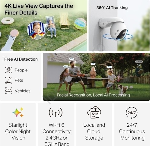 • Camera poate recunoaște în mod inteligent persoane, animale și vehicule prin tehnologie AI locală, reducând astfel notificările inutile.