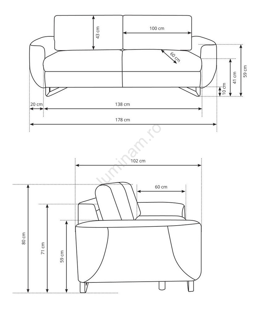 • Adâncimea de șezut de 60 cm oferă suficient spațiu pentru un șezut relaxat și ergonomic.