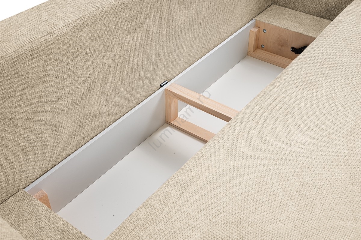 • Canapeaua dispune de un spațiu de depozitare spațios pentru păstrarea lenjeriilor de pat și a altor articole sezoniere.
